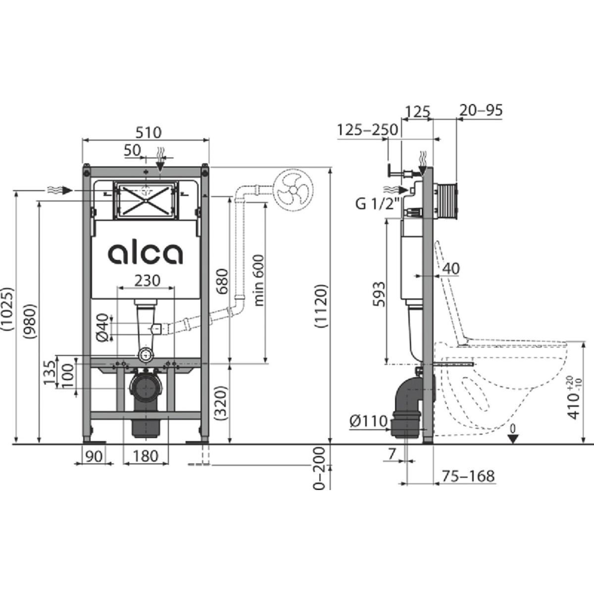 Alca Sádromodul châssis encastré pour cuvette suspendue AM101/1120
