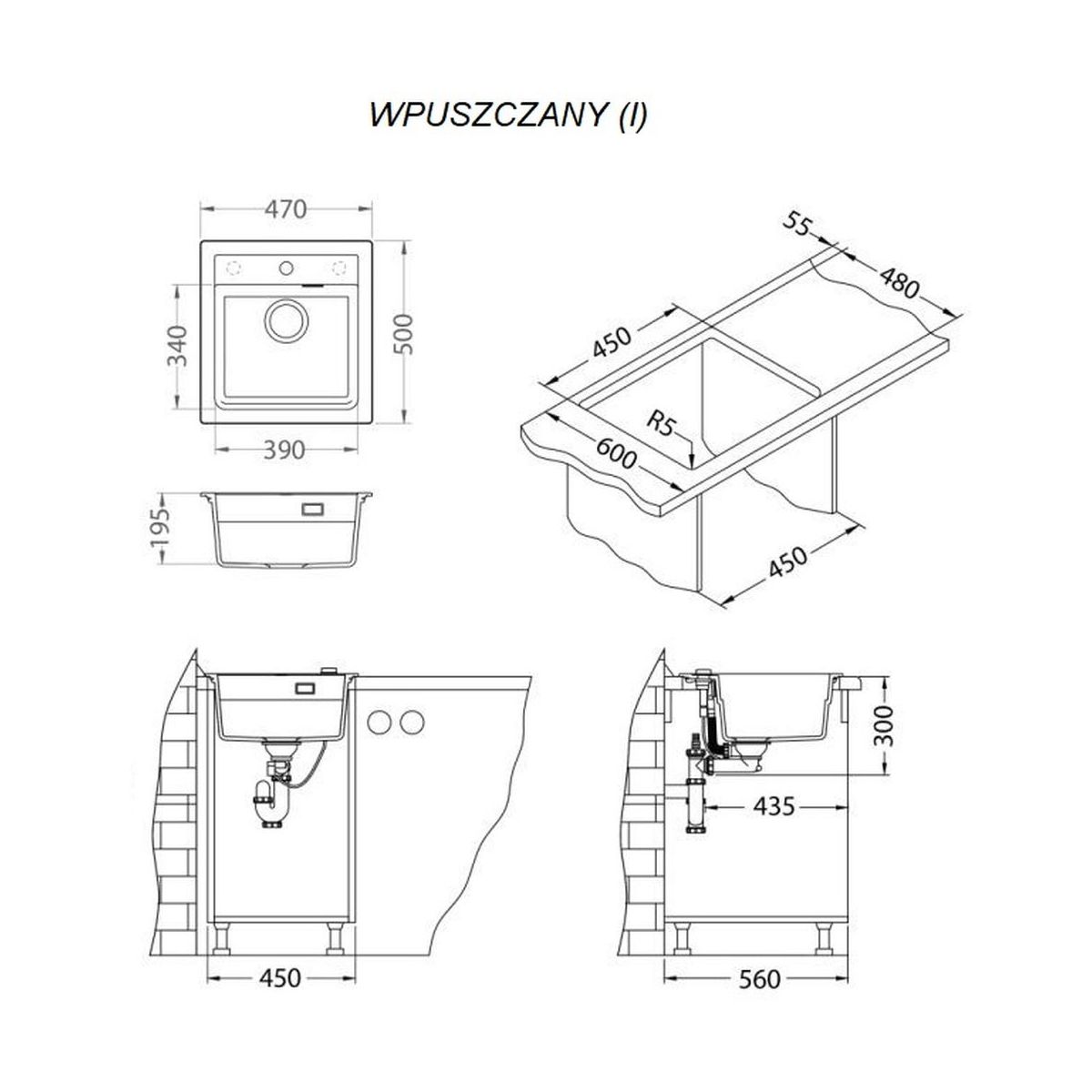 - dimensions de la découpe dans le plan de travail (encastré) : 45 x 48 cm