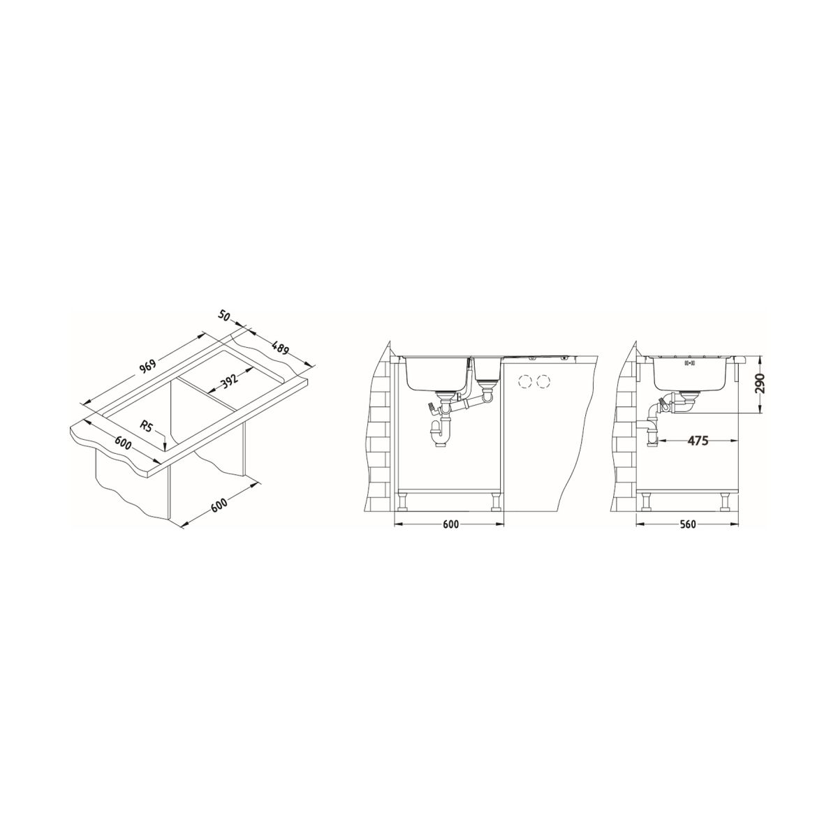 - le siphon peut être raccordé à une machine à laver/un lave-vaisselle