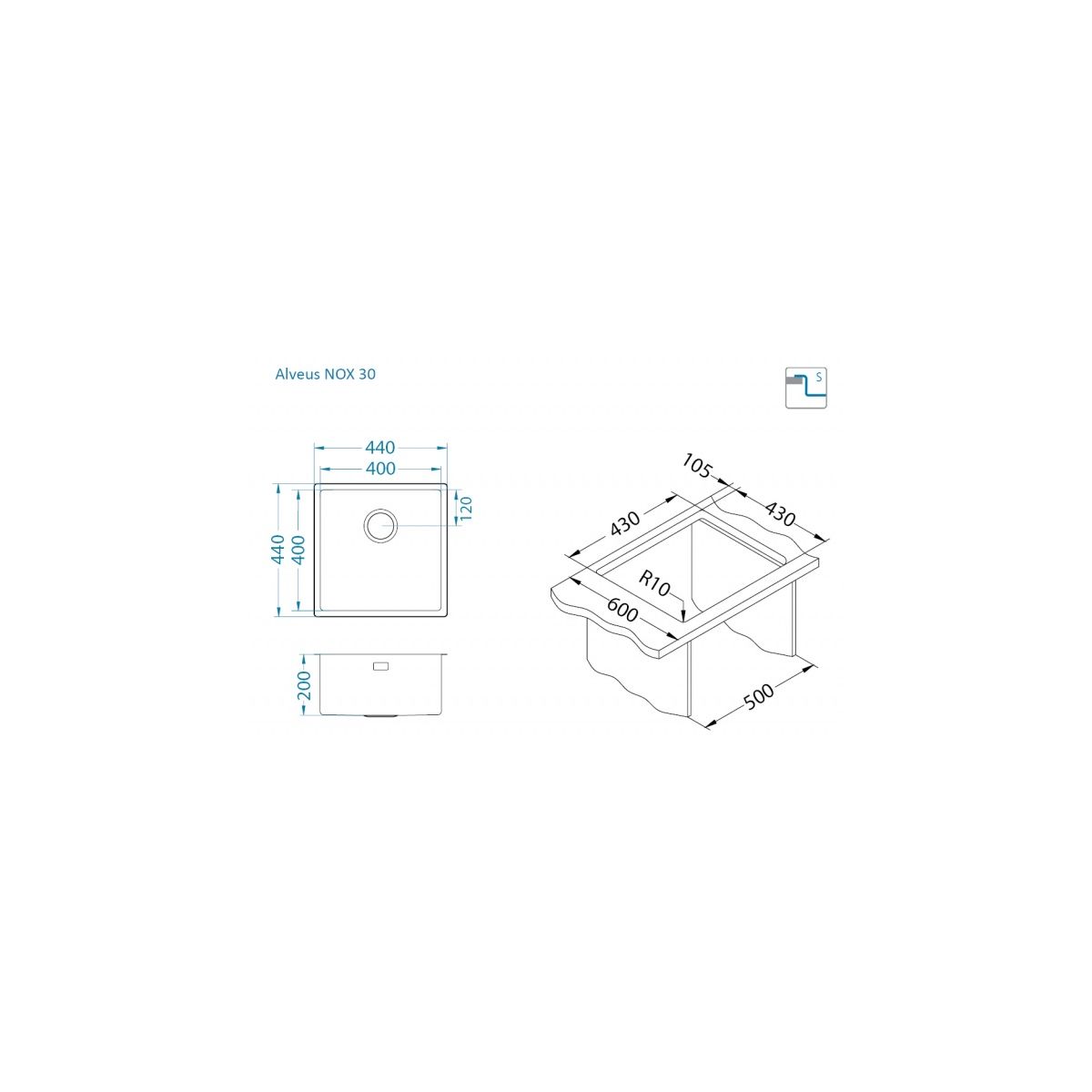 Alveus Nox évier en acier inoxydable 44x44 cm acier 1149924