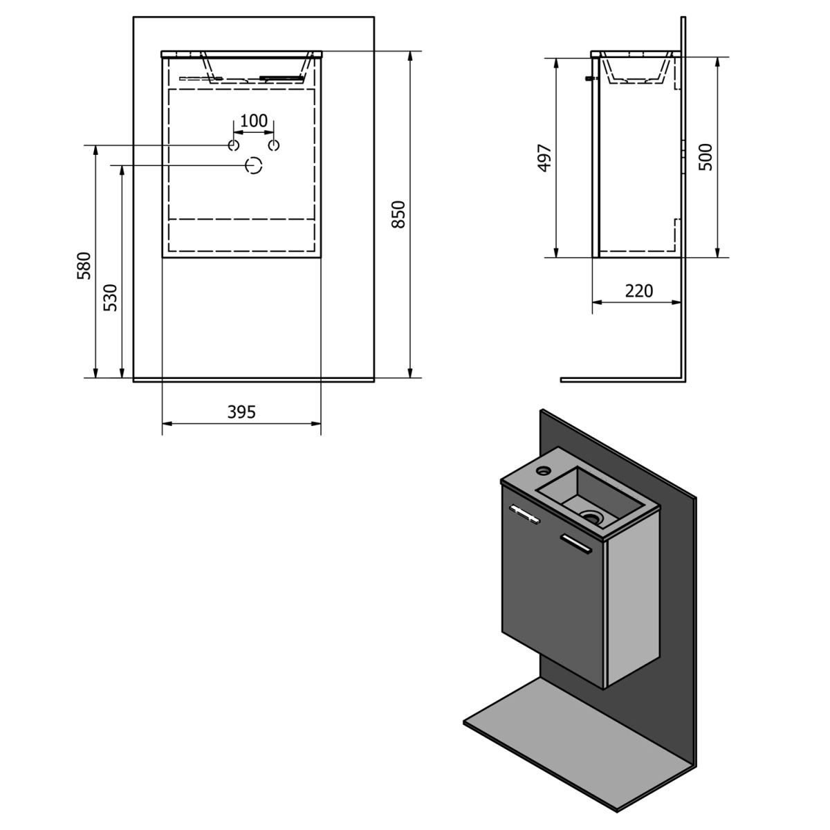 Le lavabo peut être installé avec le mitigeur à droite ou à gauche.