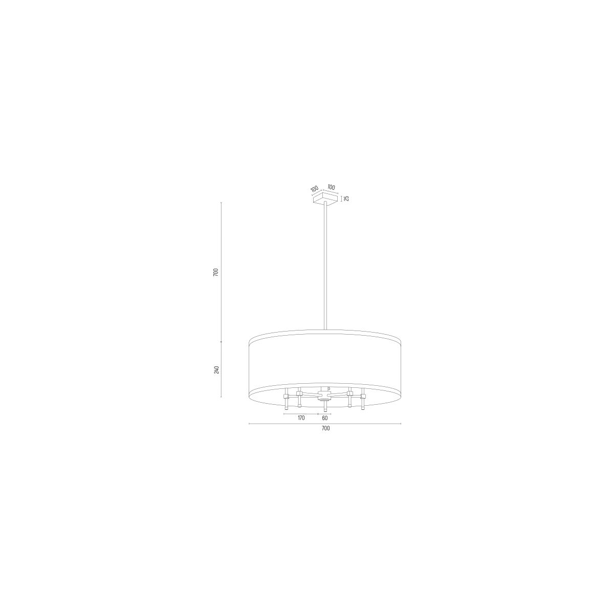 Un lustre sophistiqué pour le salon. Une lampe géante avec abat-jour. Lustre à cinq lumières de fabrication polonaise avec une armature en laiton. Une lampe glamour élégante de fabrication polonaise.