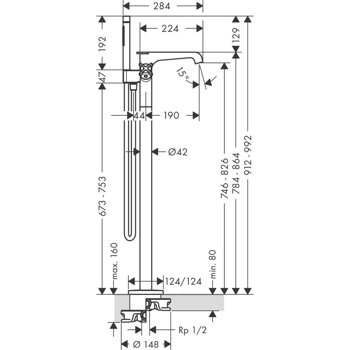 - débit de la douchette de baignoire à 3 bars : 19 l/min