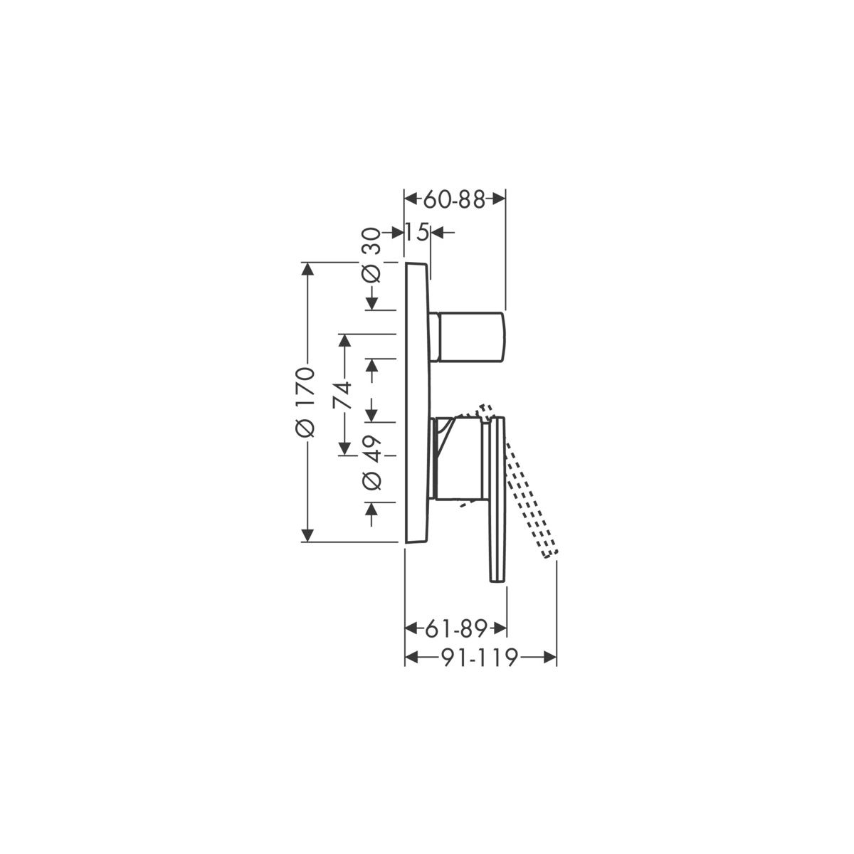 - contenu de la livraison : rosace métallique, poignée, manchon, interrupteur, élément d'installation