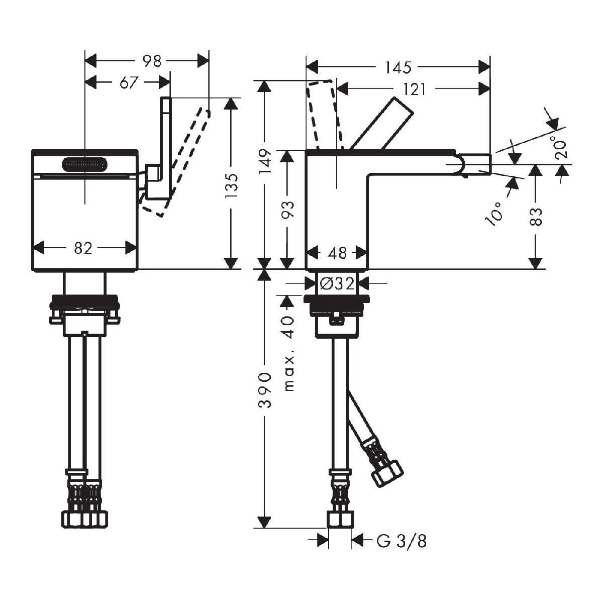 - hauteur du bec : 83 mm