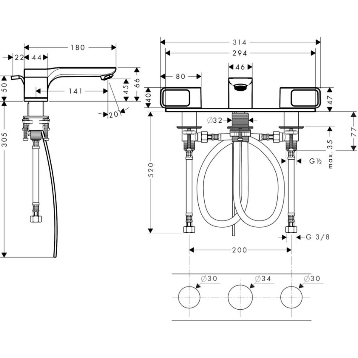 - QuickClean - détartrage facile : picots en silicone sur l'aérateur du mitigeur et sur les buses des douches
