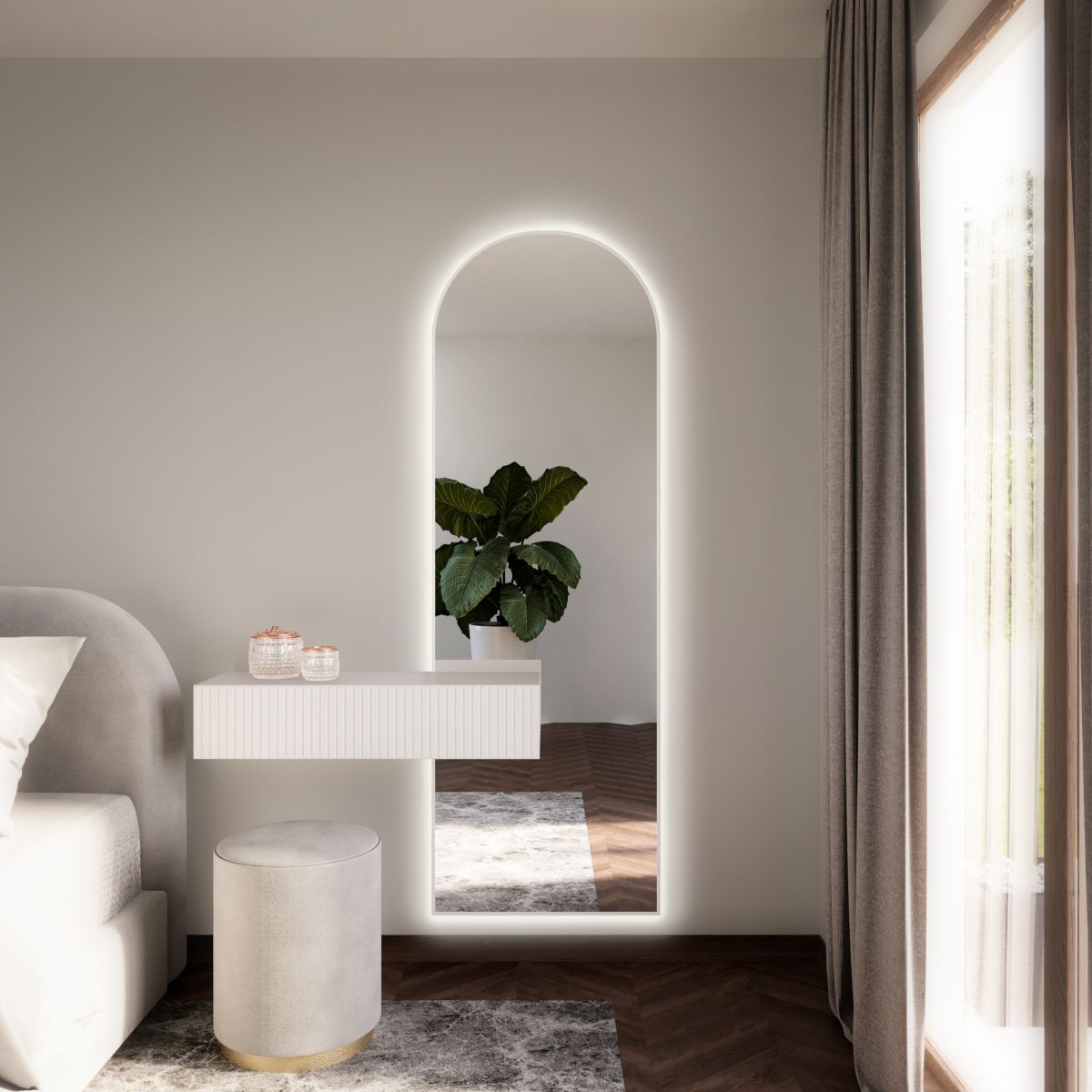 Le miroir confère à la pièce une atmosphère extrêmement chaleureuse, voire intime, agrémentée d'un soupçon de modernité. Il s'agit d'un produit haut de gamme, fabriqué en Pologne. Il allie à la fois style et fonctionnalité. La surface du miroir est entourée d'un cadre minimaliste disponible en quatre couleurs : blanc, noir, argent et or. Disponible en plusieurs tailles.
