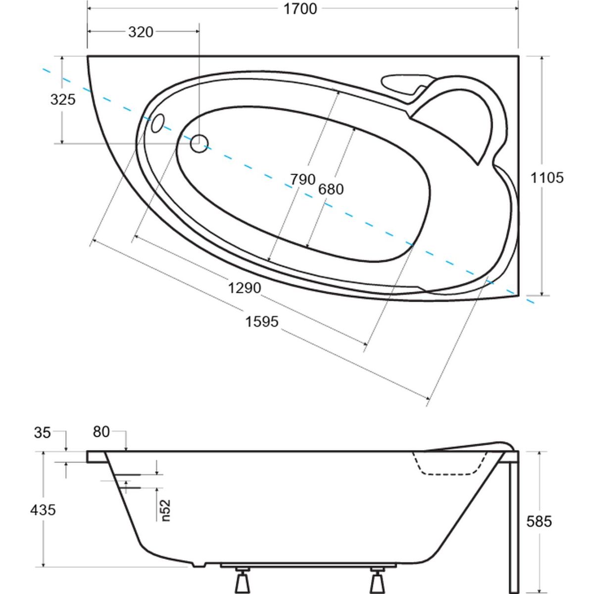 Besco Finezja Nova baignoire d’angle 170x110.5 cm côté gauche blanc #WAF-170-NL