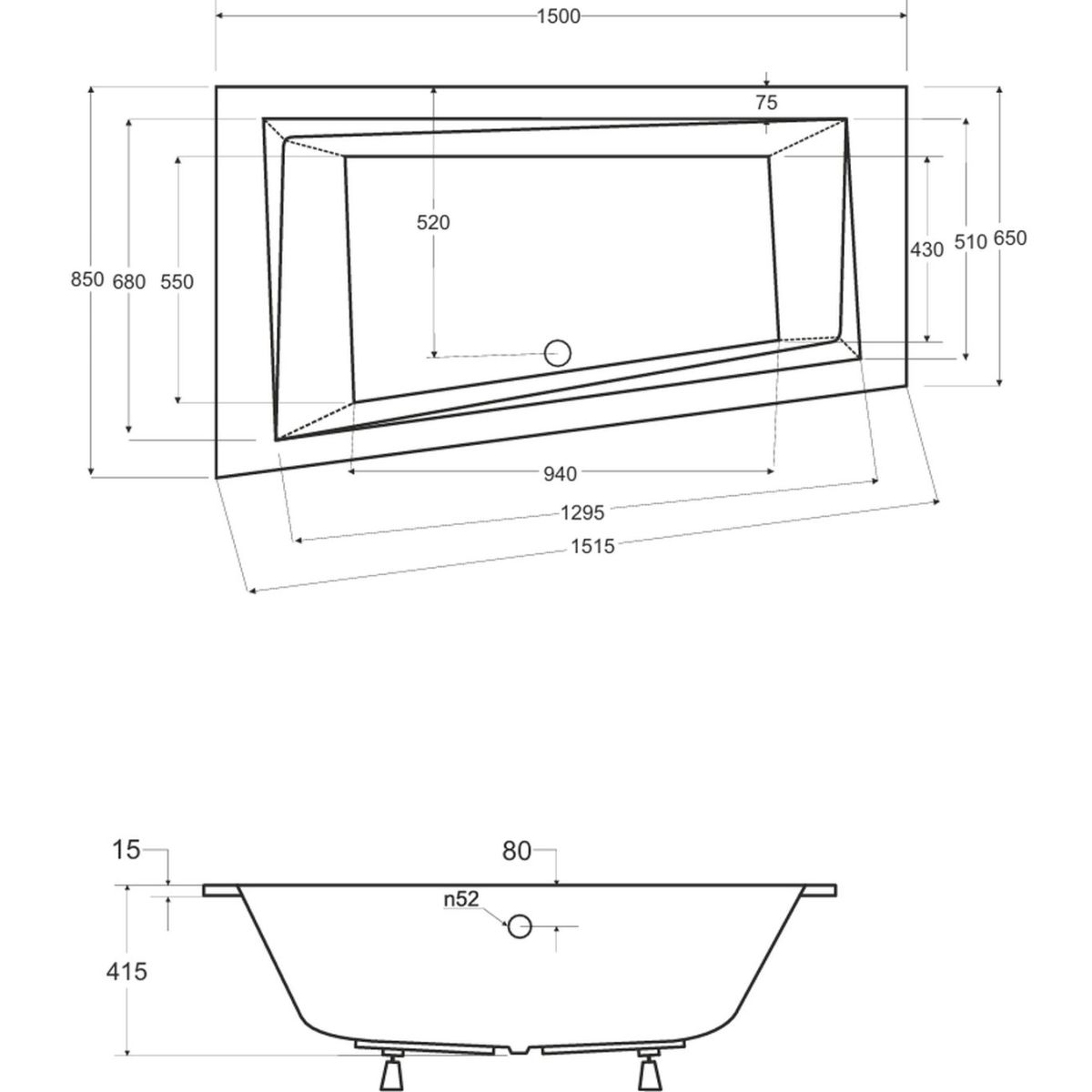 Besco Intima baignoire d’angle 150x85 cm côté gauche blanc #WAIT-150-SL