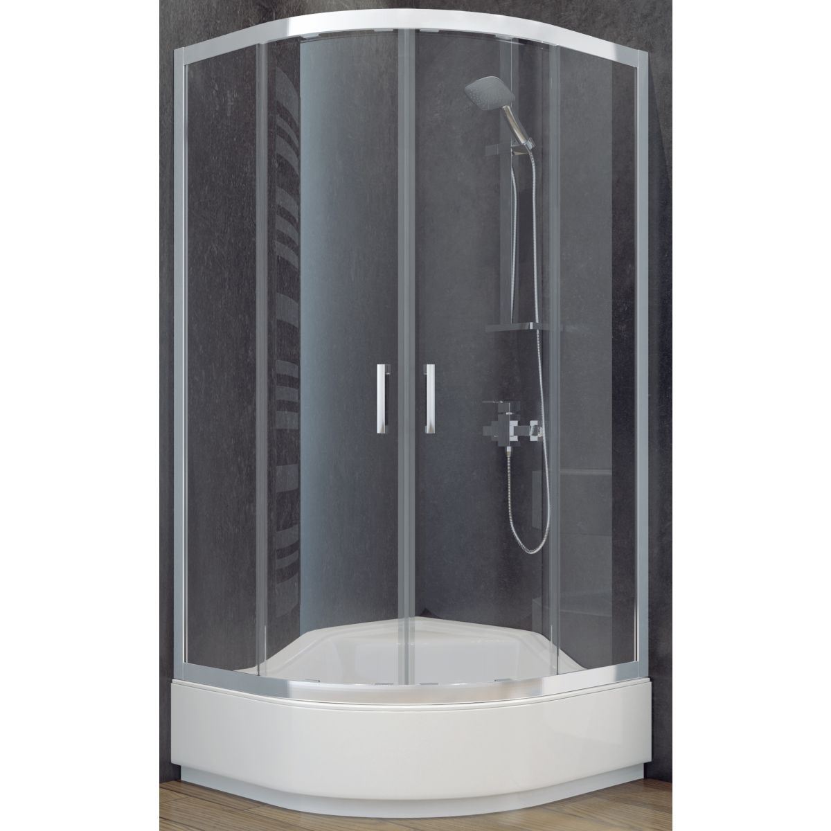 Besco Modern 165 cabine de douche 90x90 cm semi-circulaire chrome brillant/verre graphite MP-90-165-G