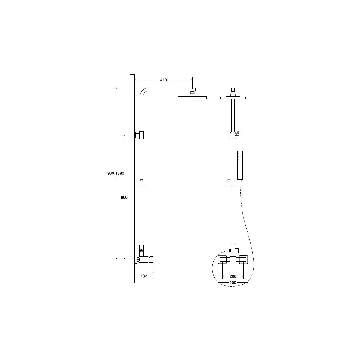 - Inclus: robinet avec inverseur, pommeau de douche à effet de pluie, pommeau de douche, tuyau flexible de douche, barre de douche