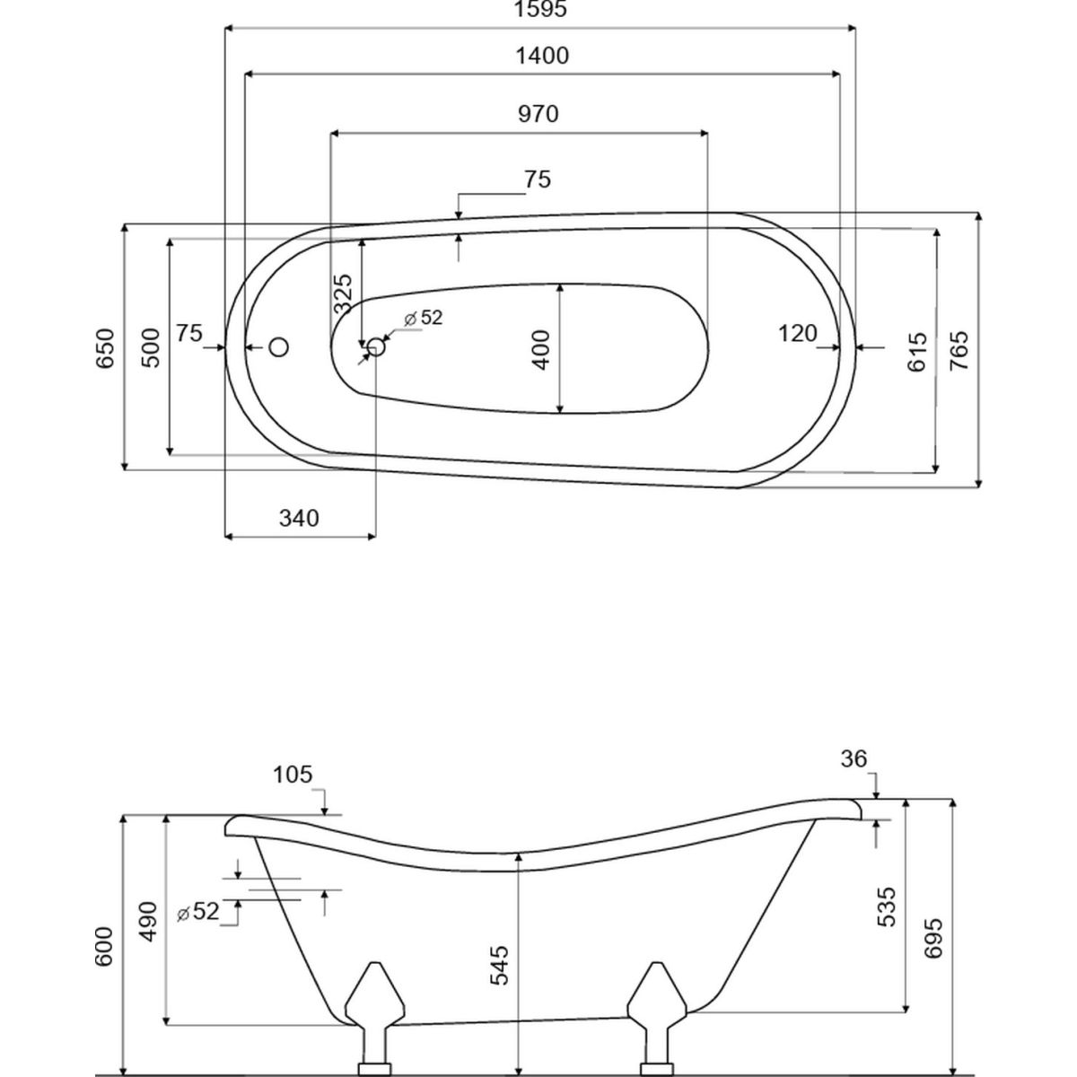 Besco Otylia baignoire autoportante 159.5x76.5 cm ovale blanc #WKO-160W+ZL