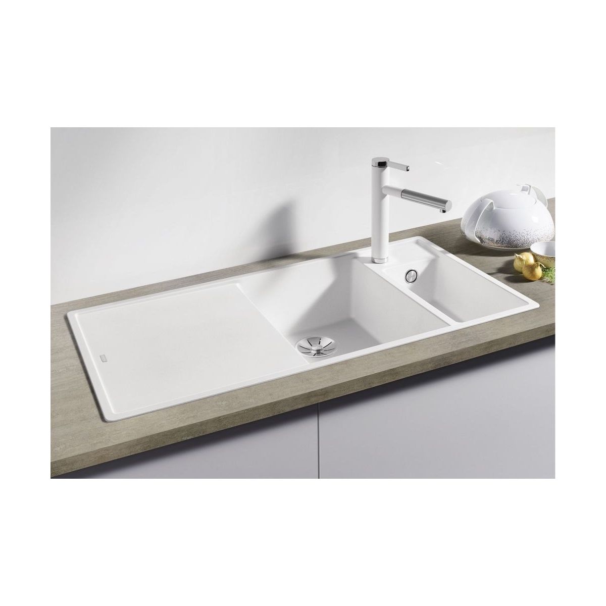 - matériau : Silgranit PuraDur (surface lisse et homogène ressemblant à la pierre)