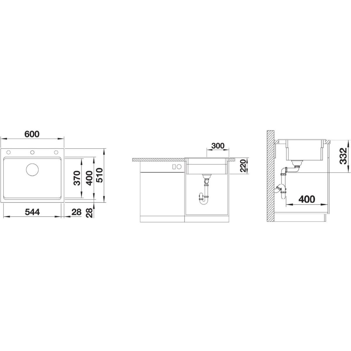 - dimensions de l'évier : 60 x 51 cm