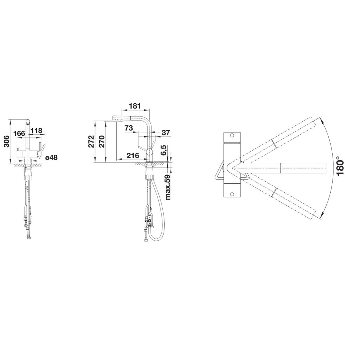 - angle de pivotement du bec 180