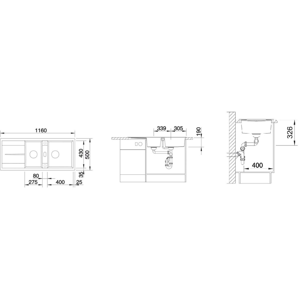 Blanco Metra 8 S évier en granit 116x50 cm gris/graphite/onyx 518884