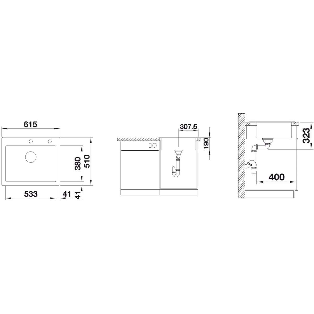 - dimensions de l'évier : 61,5 x 51 cm