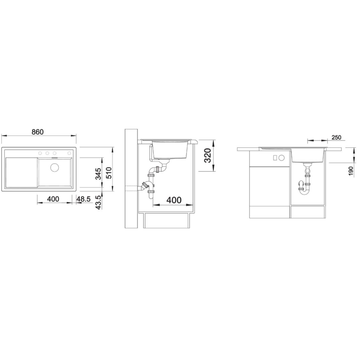 - dimensions de l'évier : 86 x 51 cm