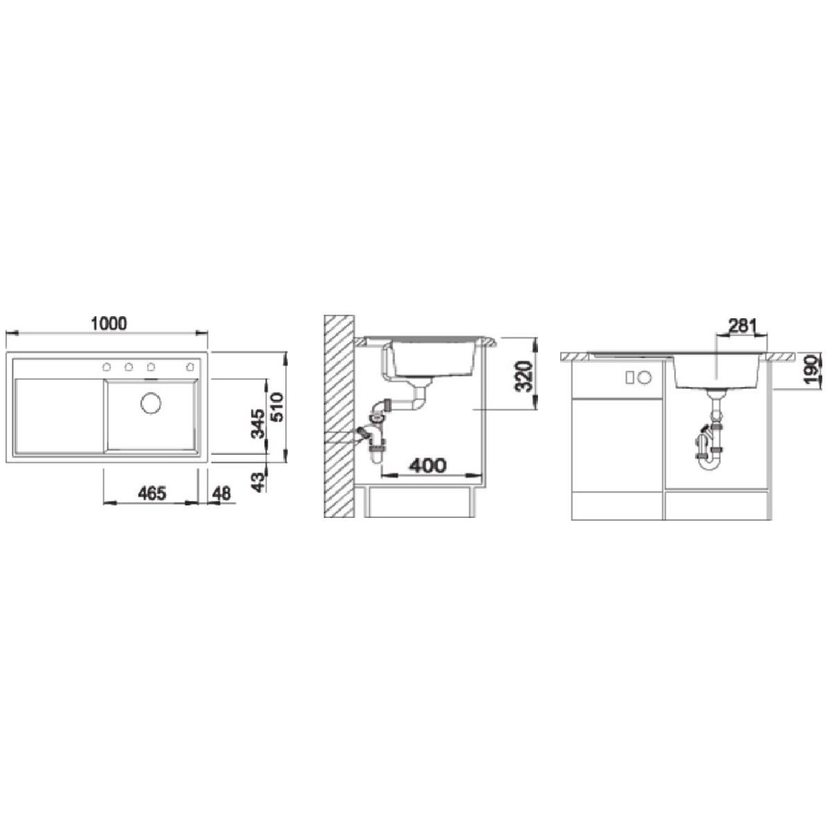 - dimensions de l'évier : 100 x 51 cm