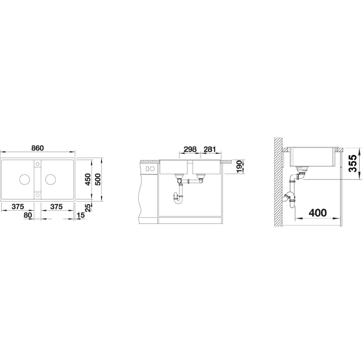 - dimensions de l'évier : 86 x 50 cm