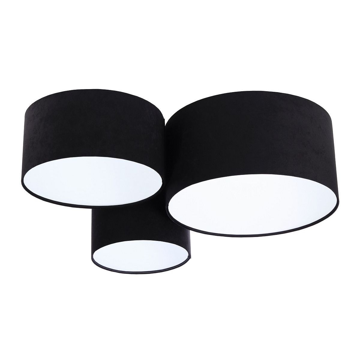 Abat-jour en tissu sur plastique PVC avec intérieur blanc. Dimensions extérieures : 91 x 74 x 33 cm. Diamètre de chaque abat-jour : 50 cm / 40 cm / 30 cm. Hauteur des abat-jour individuels : 25 cm / 20 cm / 30 cm. Paramètres électriques du luminaire : 3 x E27 max 60 W, 230 volts. Possibilité d'utiliser des ampoules LED.
