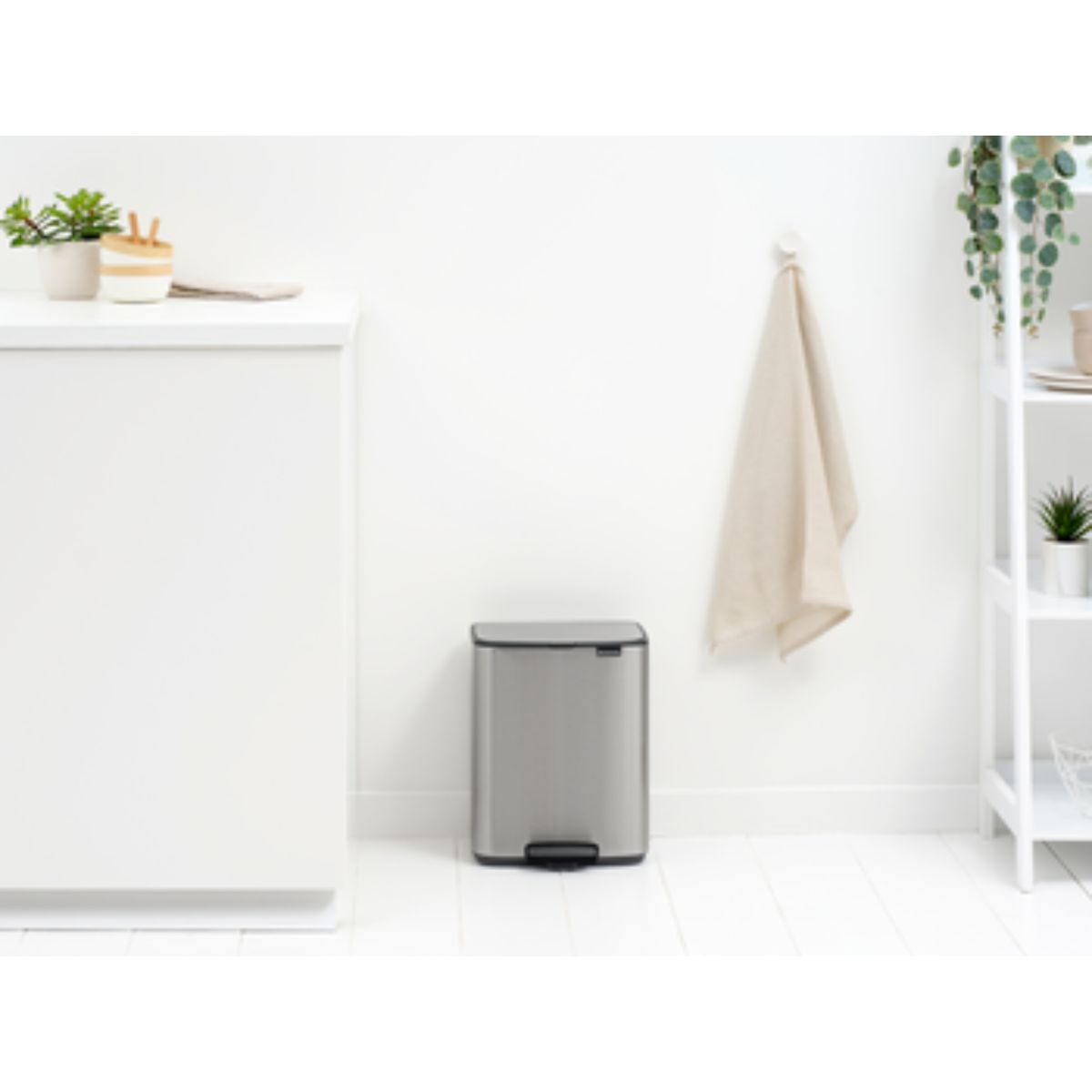 Une poubelle à pédale Brabantia Bo très utile d'une capacité de 12 litres ! Suffisamment petite pour être dissimulée sous un plan de travail, assez élégante pour être laissée à la vue de tous. Elle est également utile grâce à son design rectangulaire peu encombrant, son fonctionnement hygiénique à pédale et son seau intérieur amovible. Le couvercle à fermeture douce s'ouvre d'un léger coup de pied, ou manuellement en soulevant le bord du couvercle. Encore plus hygiénique - ce panier est doté d'une fonction de maintien en position ouverte, ce qui facilite le nettoyage et le remplacement de la cartouche. Encore plus facile - ce magnifique panier à linge est doté d'une poignée à l'arrière qui vous permet de le transporter d'une pièce à l'autre. Allez Bo !