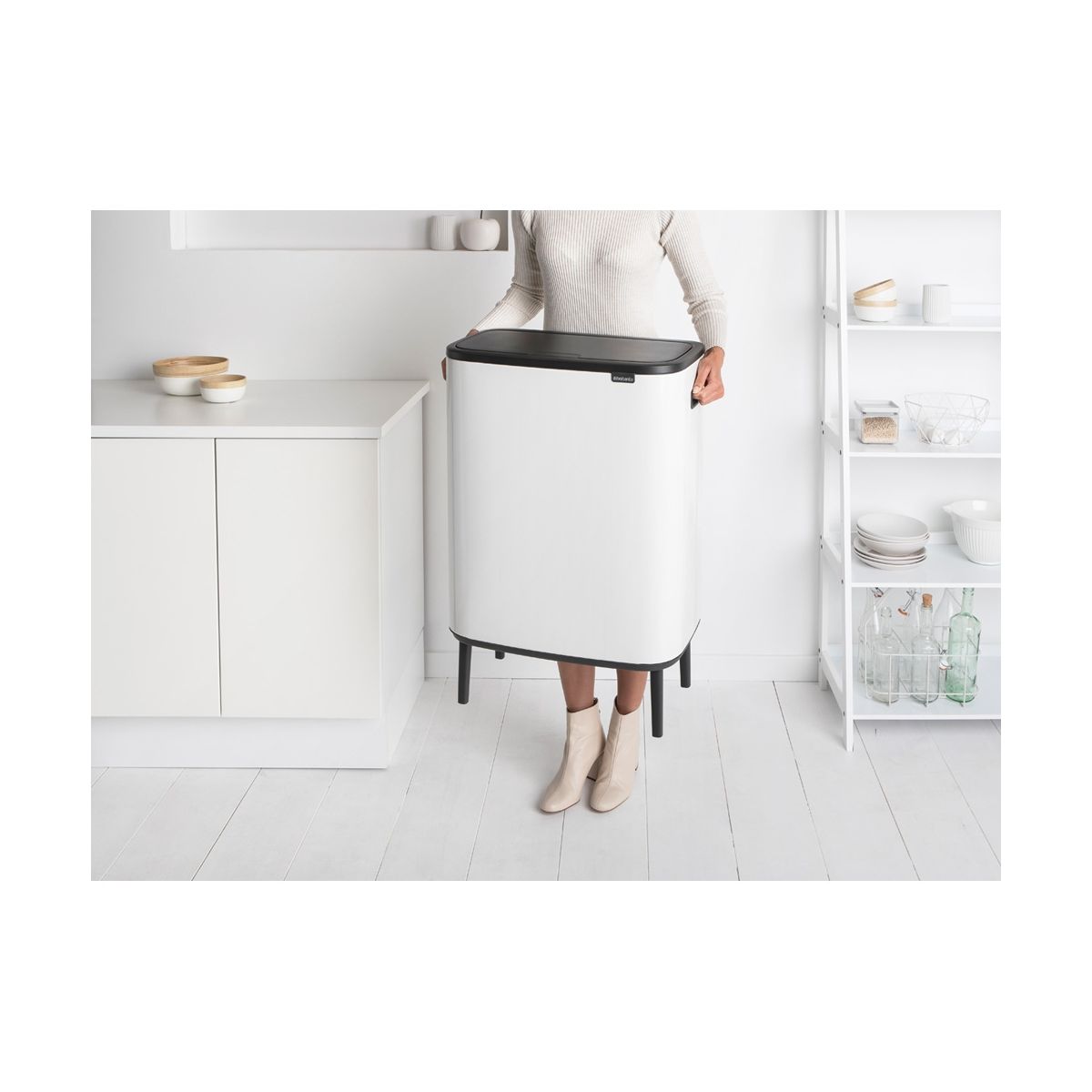 Vous cherchez une poubelle avec un grand design et une grande capacité ? Cette poubelle Brabantia Bo Touch Bin Hi est celle qu'il vous faut ! Cette poubelle XXL de 60 litres est dotée de quatre pieds élégants, d'un système d'ouverture en douceur et de poignées intégrées. Elle s'ouvre au toucher le plus léger et est conçue avec amour pour votre maison et dans le respect de la planète. Une aide précieuse pour tous les ménages.