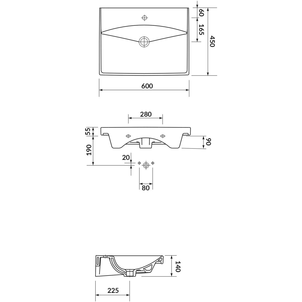 Cersanit City lavabo 60x45 cm rectangulaire de meuble blanc K35-006