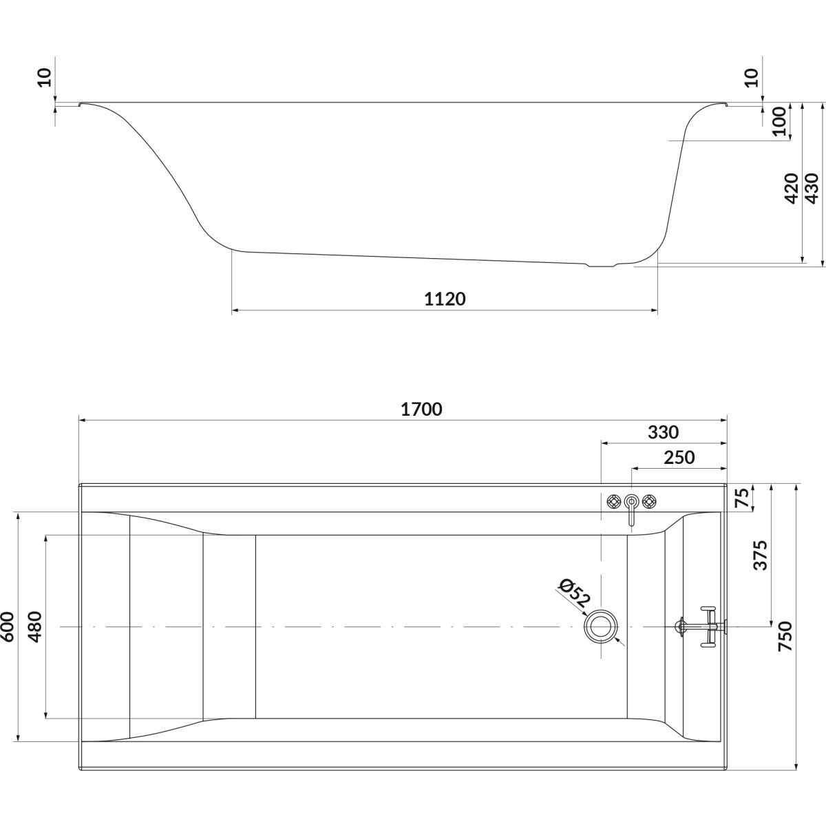 La baignoire LARGA 170 fait partie d'un concept de salle de bains au design moderne, conçu pour être encastré avec du carrelage grâce à une élégante solution de rebord - seulement 10 mm d'épaisseur. Le dossier ergonomique de forme spéciale des baignoires LARGA est une caractéristique qui définit le confort ultime du bain. Il est possible d'installer un mitigeur sur le rebord de la baignoire. Le produit est livré avec des pieds permettant de régler la hauteur. La bonde et le trop-plein doivent être achetés séparément.