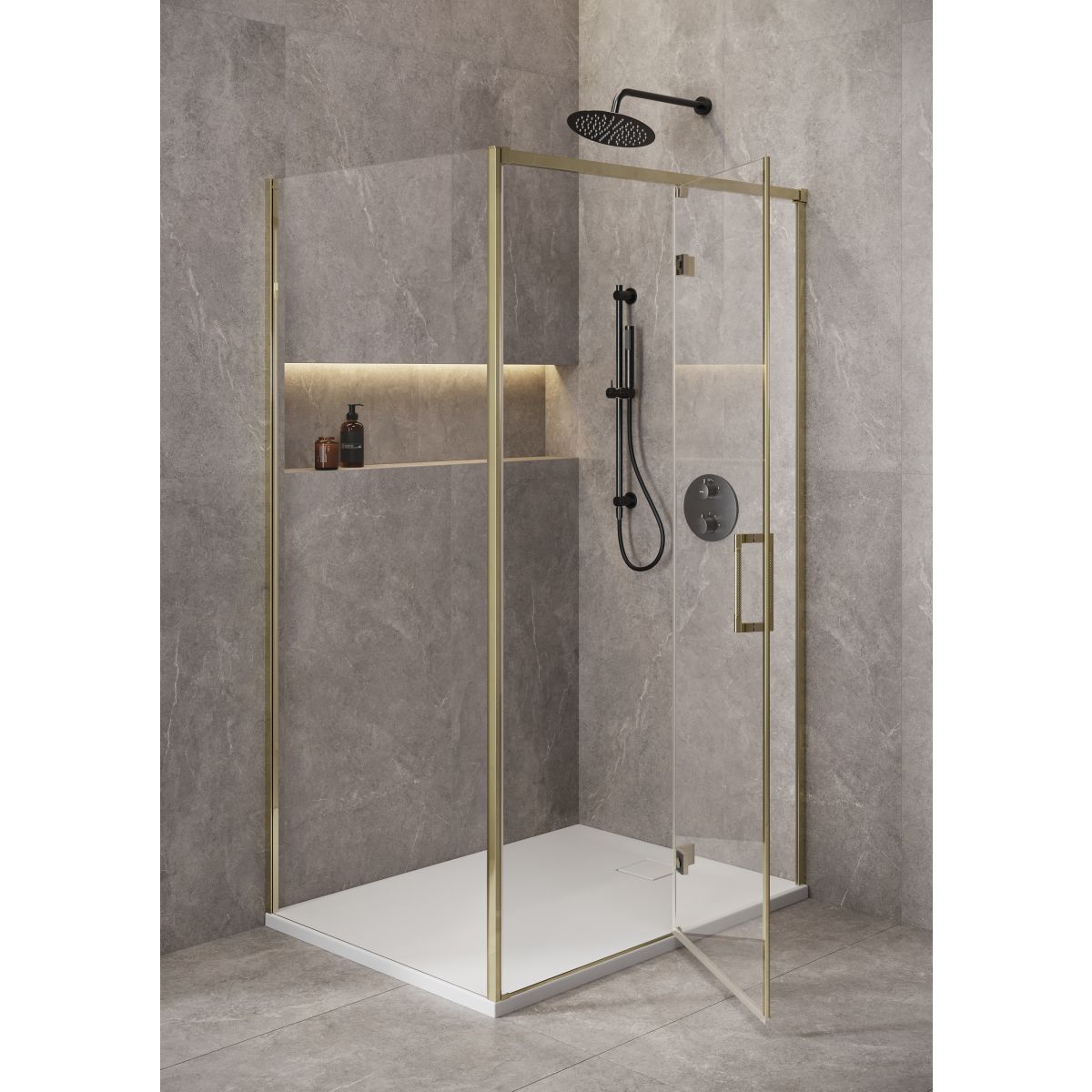 La porte de la cabine de douche est en verre de sécurité trempé de 6 mm d'épaisseur, ce qui assure la stabilité de la structure et garantit la sécurité d'utilisation. Le verre est recouvert d'un revêtement hydrophobe CleanPro, qui empêche efficacement l'accumulation de calcaire et de saleté. Des charnières métalliques affleurant la surface du verre à l'intérieur créent une surface uniforme qui facilite l'entretien. Les charnières ont pour fonction de soulever et d'abaisser la porte, ce qui prolonge la durée de vie des joints. Le mécanisme innovant des charnières permet également d'arrêter la porte lorsqu'elle s'ouvre à 90°, offrant ainsi une protection contre les chocs accidentels. Les poignées métalliques double face de haute qualité ont une finition moletée, alliant le style à la fonctionnalité et à la durabilité. Le profilé mural réglable offre une plus grande souplesse d'installation, car il peut être utilisé sur des murs irréguliers. Des joints magnétiques et une bande de seuil empêchent l'eau de s'échapper de la cabine de douche, garantissant ainsi le plus haut niveau d'étanchéité. Le produit est conçu pour être installé dans une niche ou sur une paroi latérale de la cabine de douche, avec un receveur de douche ou directement sur le sol. Profilés en or mat. Verre transparent. Hauteur 195 cm. Version gauche. La haute qualité du produit est confirmée par une longue garantie.