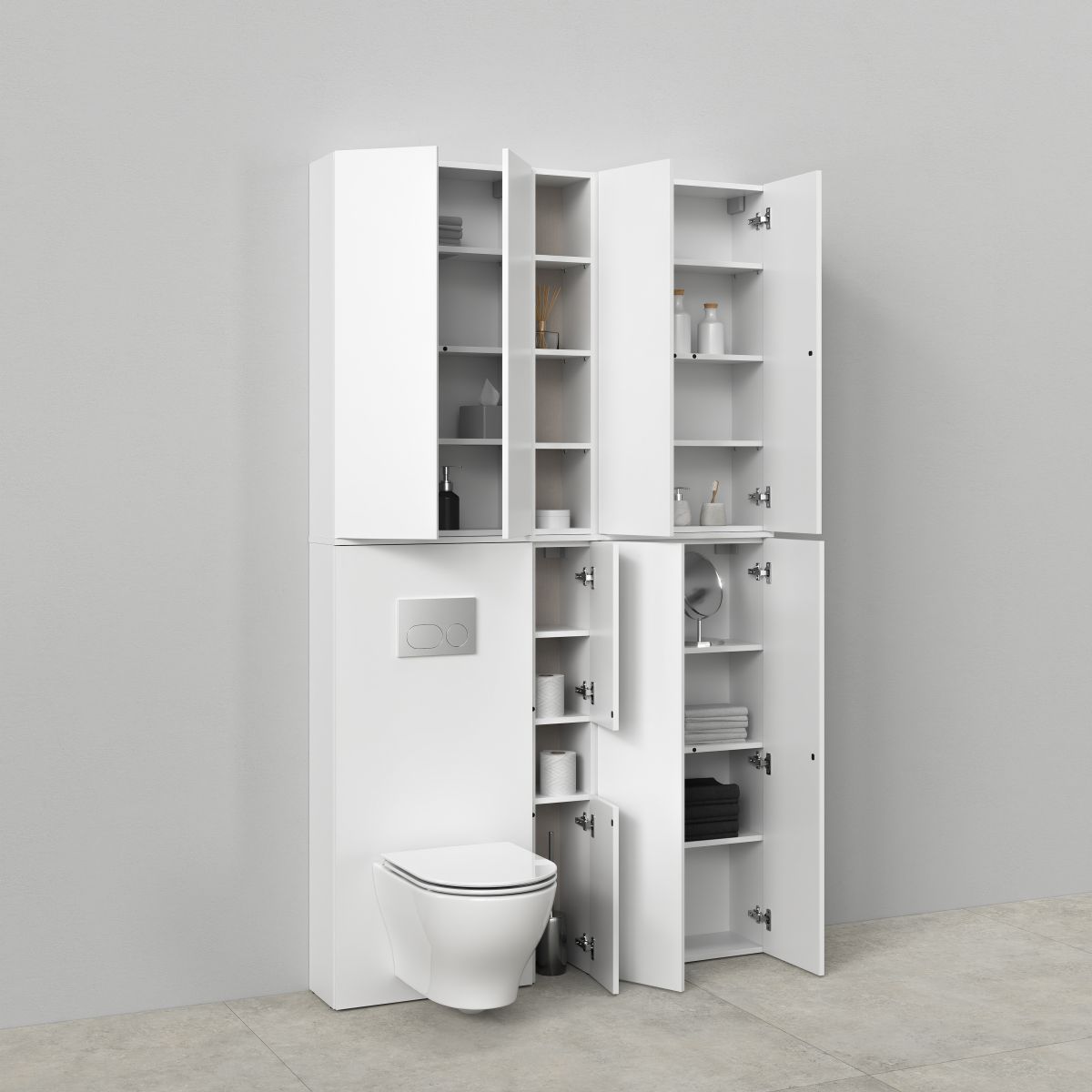 - armoire cargo - solution pratique qui optimise l'espace, facilite l'accès aux accessoires de salle de bains et permet de ranger des objets hauts