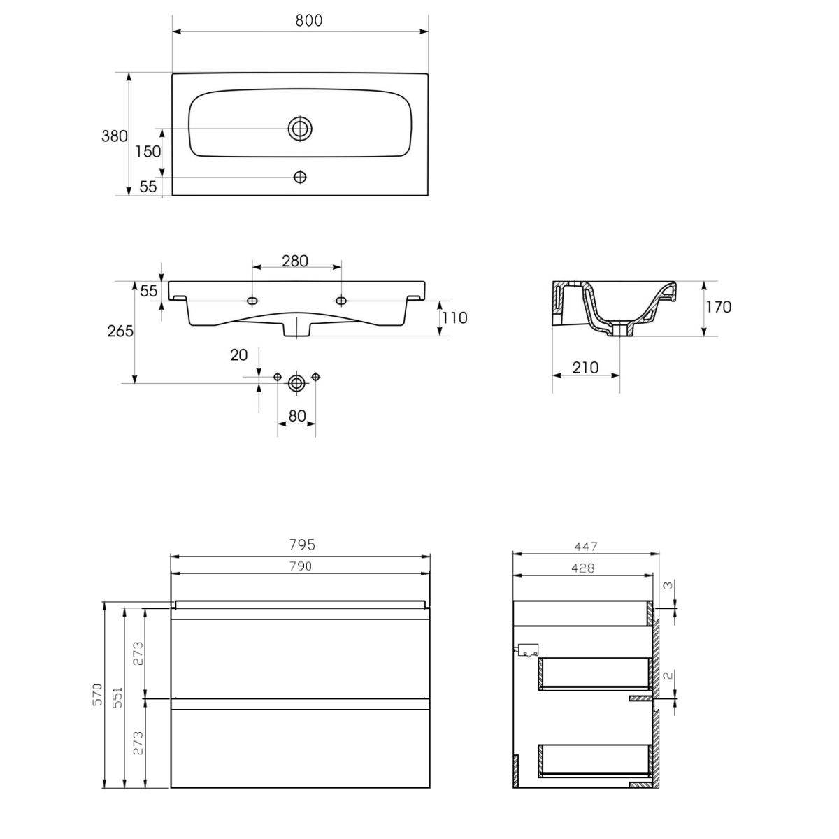 Cersanit Moduo lavabo avec meuble 80 cm blanche S801-225-DSM