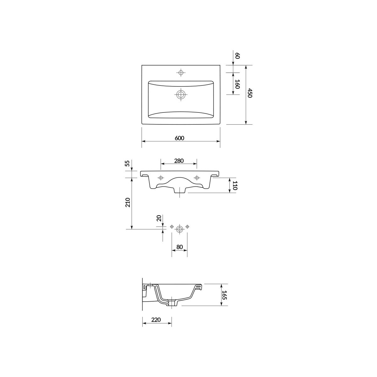 - dimensions du lavabo : 60x45x1,5