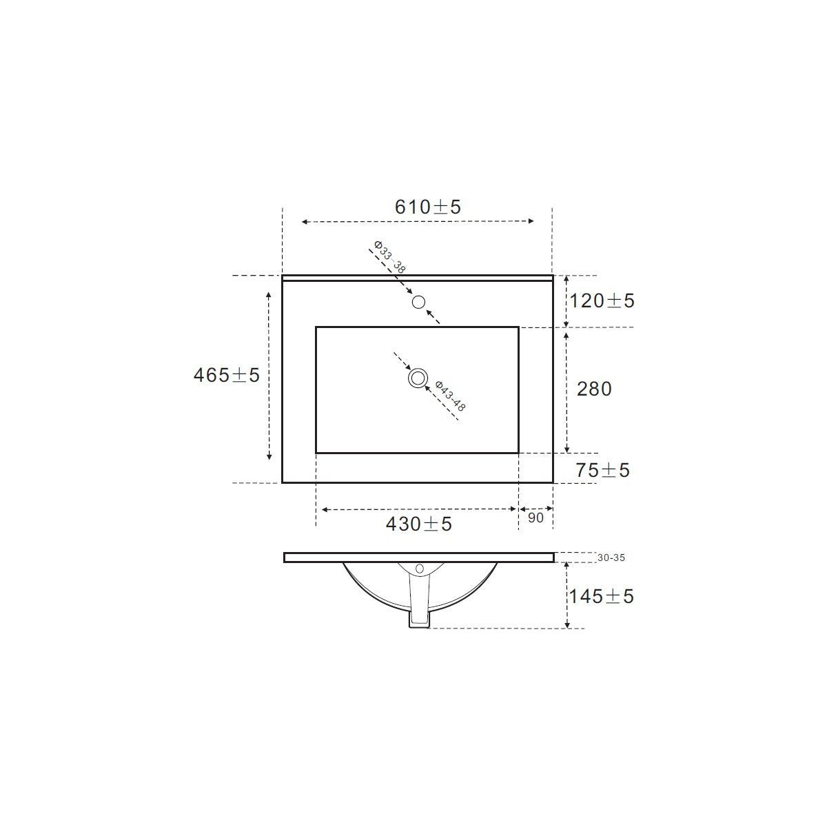 Position de la cuvette du lavabo: au milieu
