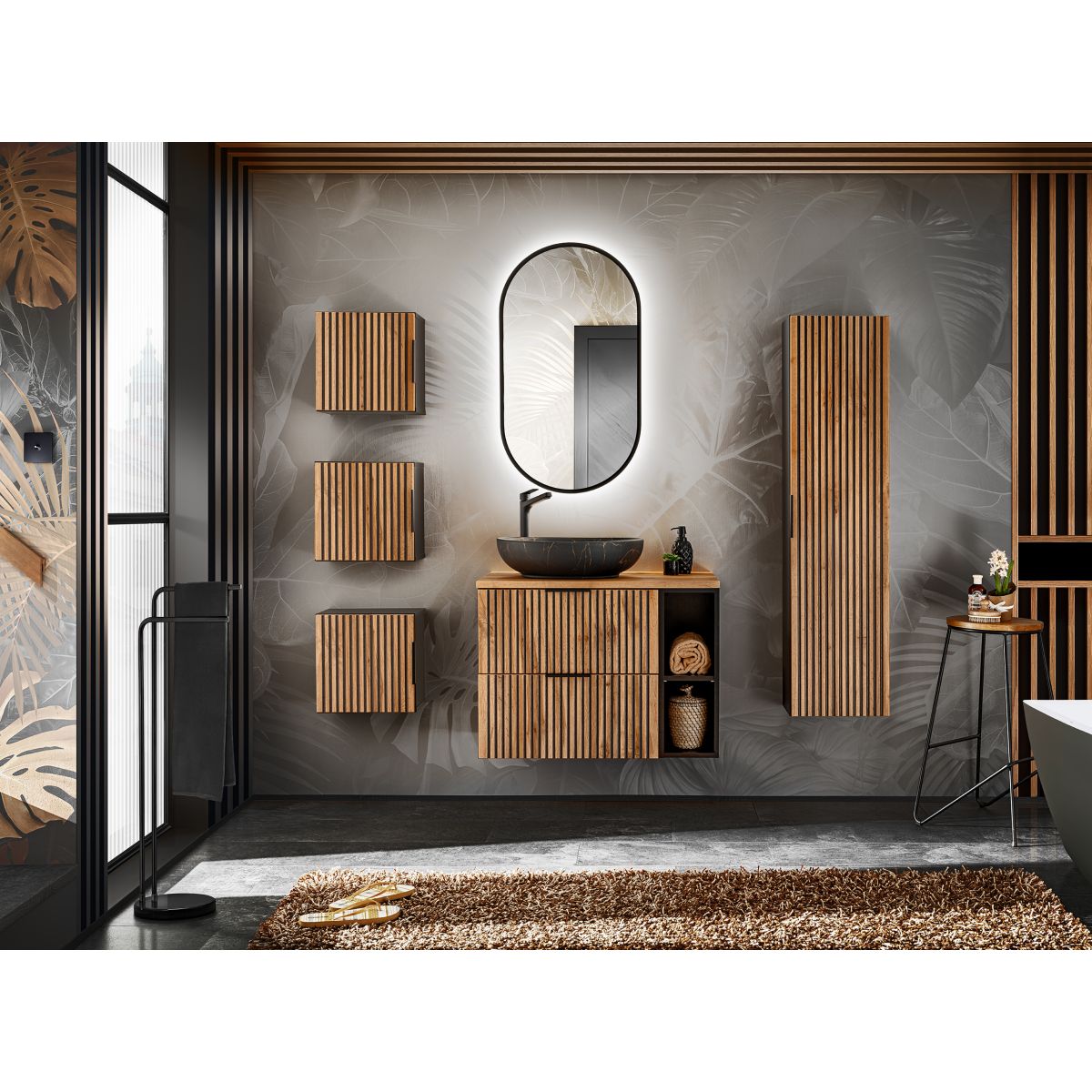 Il s'agit d'une collection qui ravit par sa couleur et son style, le grain expressif du chêne Wotan combiné au rainurage noir est une nouveauté sur le marché du meuble qui devient de plus en plus populaire. La collection comprend des meubles sous-vasques de différentes dimensions, un poteau haut, des armoires et une étagère inférieure, ce qui rend la collection modulaire et permet de créer des ensembles adaptés à des salles de bains de toutes dimensions. La collection Xilo n'est pas seulement synonyme de qualité et de design moderne, mais aussi de confort et de fonctionnalité. Pour les armoires à lavabos, vous pouvez utiliser des lavabos sur meuble ou les combiner avec des plans de travail et choisir un lavabo réglable dans la vaste offre de Comad.
