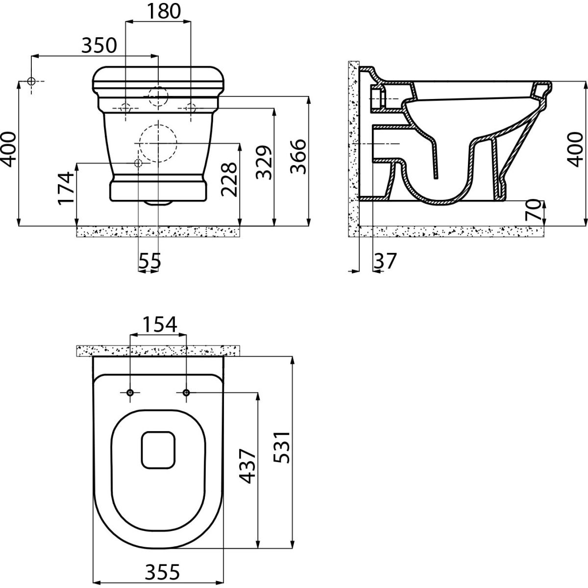 Creavit Antik cuvette de wc suspendue blanc AN320