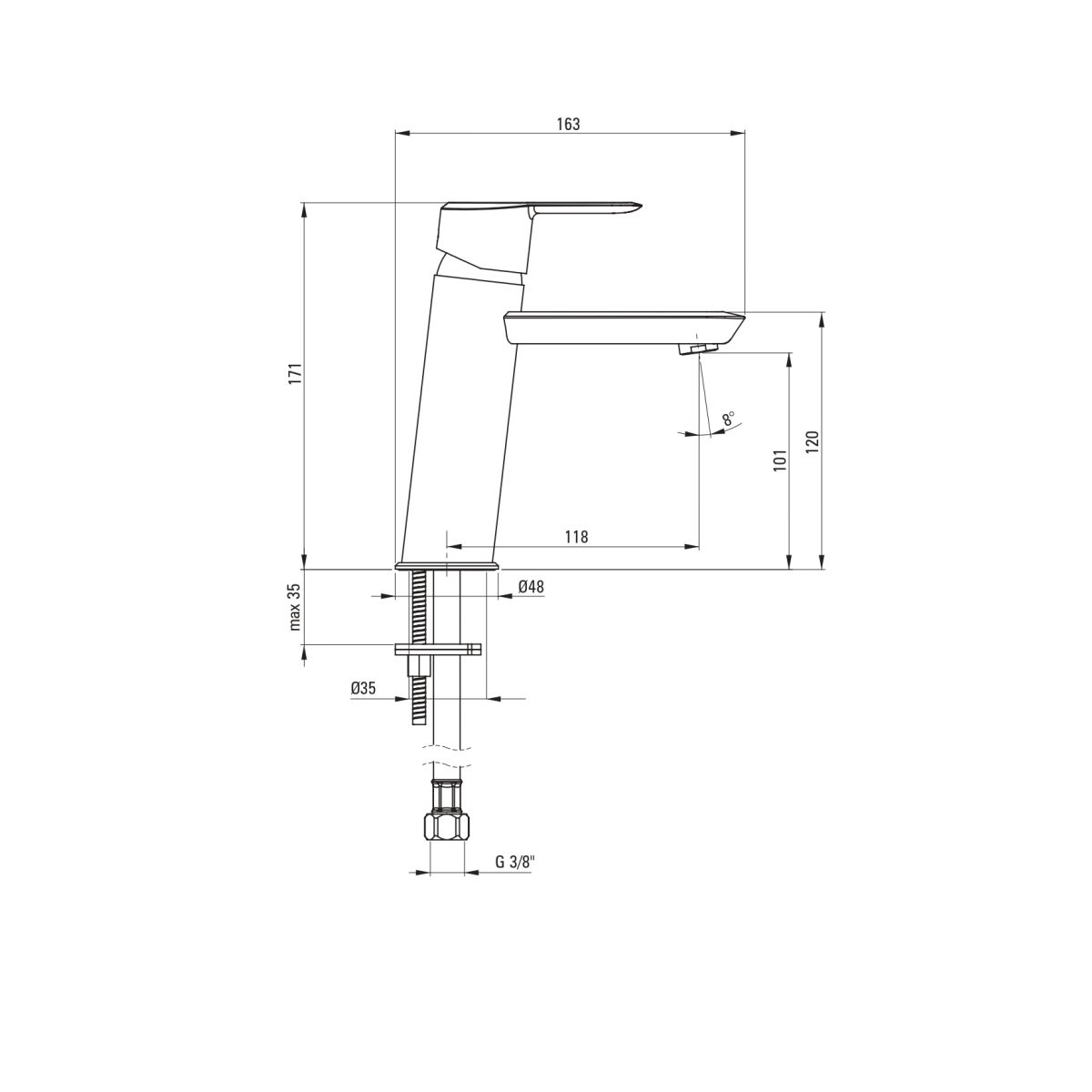 - filetage d'installation : 3/8''
