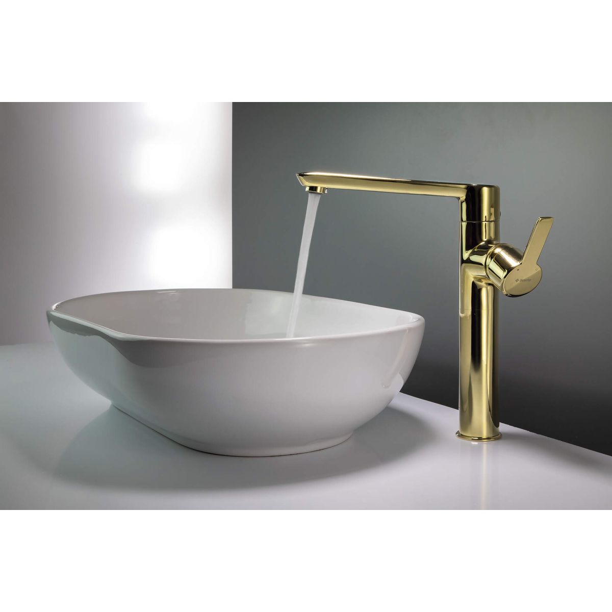 Le mitigeur de lavabo à corps surélevé de la collection Arnika se distingue par ses formes harmonieuses et arrondies. Sa finition dorée extravagante lui confère un caractère moderne. Le mitigeur est équipé d'un aérateur en silicone qui aère le jet d'eau et d'un système anti-calcaire qui facilite le nettoyage. La tête en céramique et la garantie constructeur de sept ans assurent une longue durée de vie du produit.