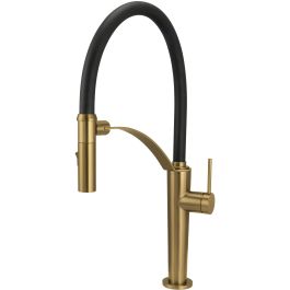 Le mélangeur de cuisine Corda est la combinaison parfaite du classique et du moderne. Le bec flexible permet de laver facilement la vaisselle et de garder l'espace autour de l'évier propre. Grâce à la poignée magnétique, le bec revient toujours à sa place. Le combiné à double fonction vous permet de changer facilement le jet de l'aération à la pluie pour plus de confort. La finition du robinet est en bronze brossé, qui ne laisse pas apparaître les traces de doigts, ce qui lui confère un bel aspect tout au long de son utilisation. Son design se marie parfaitement avec la série d'éviers en granit Corda, créant ainsi un ensemble cohérent et élégant dans une cuisine moderne.