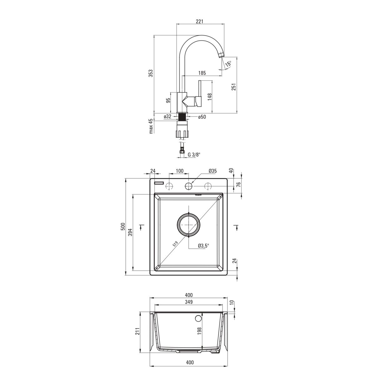 L'évier en granit avec mitigeur noir est synonyme d'élégance et de fiabilité. Le mitigeur est équipé d'un aérateur qui permet d'aérer le flux d'eau. L'évier est fabriqué en granit, ce qui garantit une durabilité extraordinaire et une résistance aux chocs, aux chocs thermiques et à la décoloration, grâce à la conformité à la norme PN-EN 13310. L'évier est équipé d'un siphon qui permet de gagner de la place. Son design compact permet une utilisation efficace de l'espace sous l'évier, offrant un espace de rangement supplémentaire pour les produits de nettoyage ou autres accessoires de cuisine.