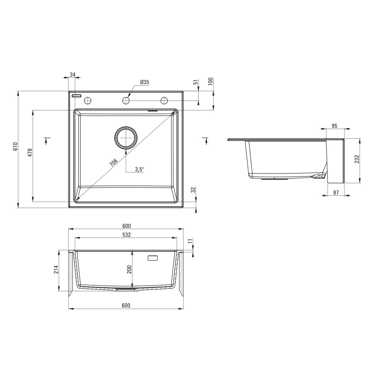 Deante Eridan évier en granit 61x60 cm gris/graphite/onyx ZQE_S10K