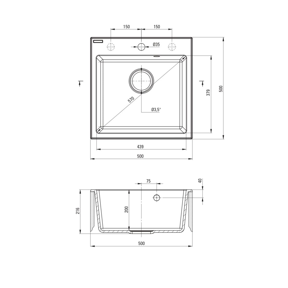 - matériau : granit résistant aux chocs, à la chaleur, aux taches et aux chocs thermiques