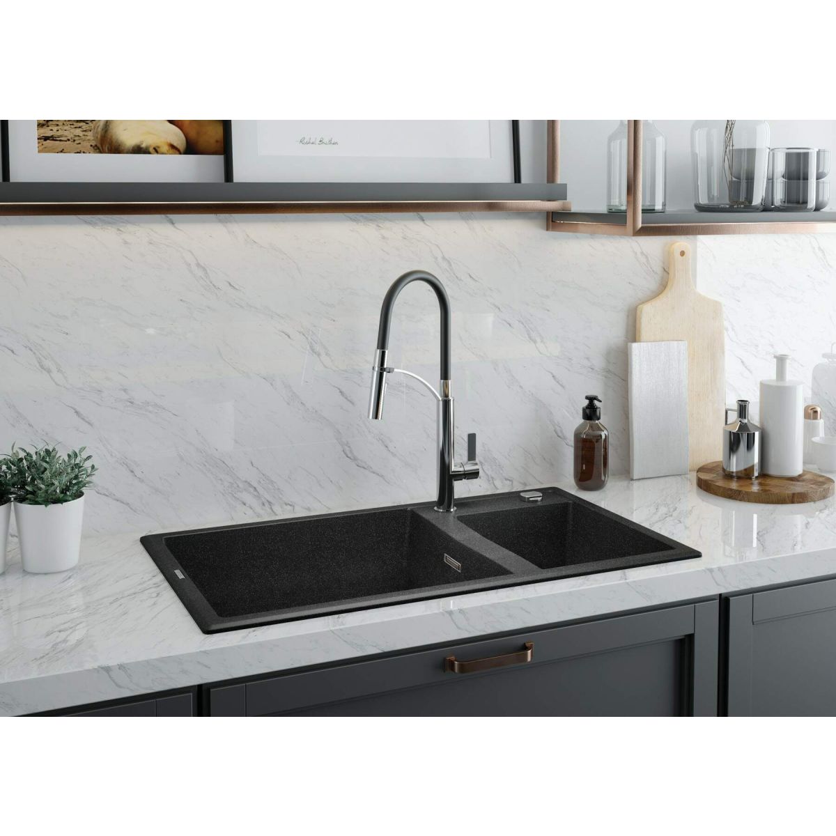 Le mitigeur Gerbera avec combiné extractible est à la fois élégant et pratique. Il est équipé d'un bec flexible, qui facilite la propreté de la zone autour de l'évier. Le combiné du robinet possède deux fonctions : un jet aéré et un jet de pluie, idéal pour rincer les légumes et les fruits. La finition noire mate ravira les amateurs de style moderne et élégant.