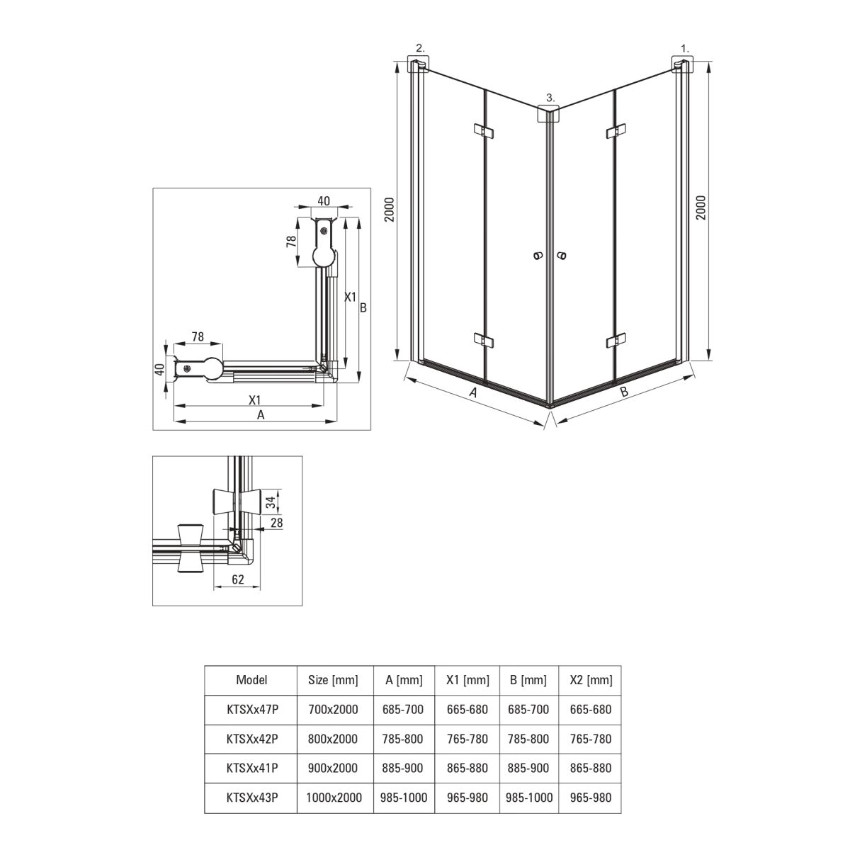 La cabine est équipée d'une porte pliante. Elle est fabriquée en verre trempé TOTALWHITE. Kerria est un modèle réversible avec fermeture silencieuse. Les portes sont recouvertes d'un revêtement Active Cover qui, grâce à ses propriétés hydrophobes, facilite le nettoyage de la cabine. Les profilés chromés s'harmonisent parfaitement avec les robinets de la même finition et s'adaptent aussi bien aux intérieurs classiques que modernes.