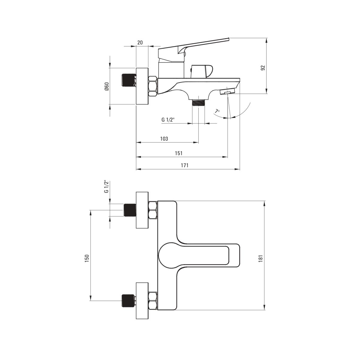 Deante Loco mitigeur bain-douche murale chrome BLC_010M