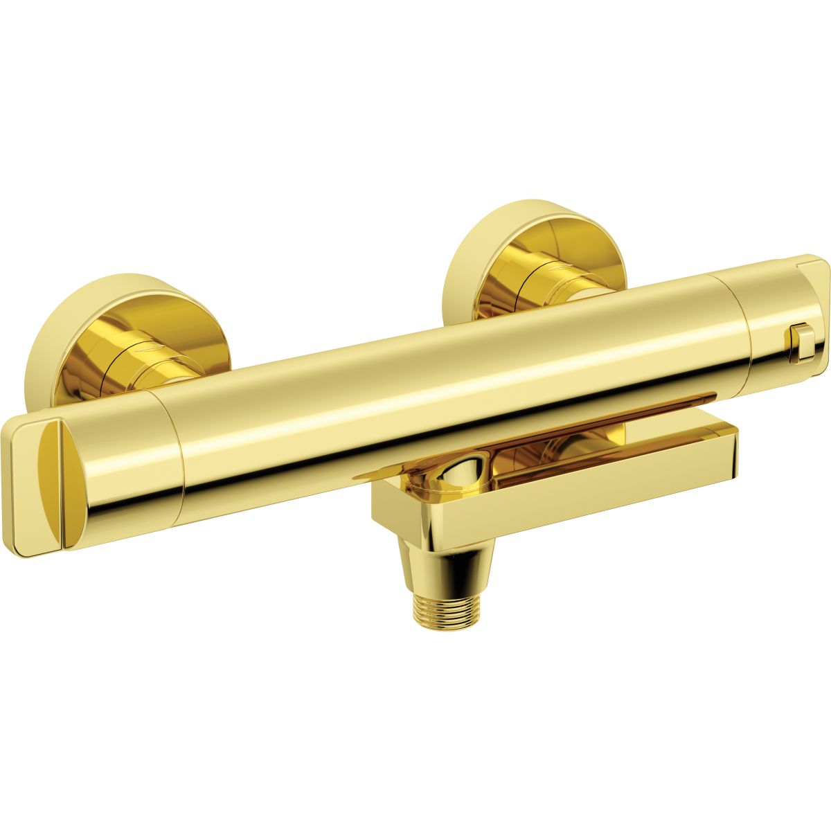 Le mitigeur de bain en laiton est un modèle thermostatique qui vous permet de maintenir la température confortable que vous avez choisie. Le bec rabattable permet de commuter les fonctions entre le mitigeur et le combiné. Le produit est équipé d'un verrouillage de la température à 38˚ C, qui empêche les brûlures, ce qui est important, en particulier lorsque de jeunes enfants profitent du bain. De plus, le mitigeur thermostatique est doté de poignées exceptionnellement ergonomiques, garantissant un contrôle pratique du débit d'eau. La finition dorée du mitigeur ajoute une touche unique à la salle de bains.