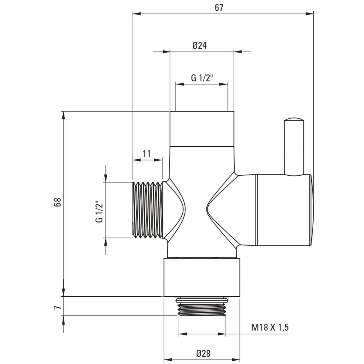 Interrupteur de fonction pour les douchettes rondes NBJ_01RK et carrées NBJ_01SK de Joko. L'interrupteur est à 2 fonctions, mécanique avec filetage mâle G1/2-G3/4.