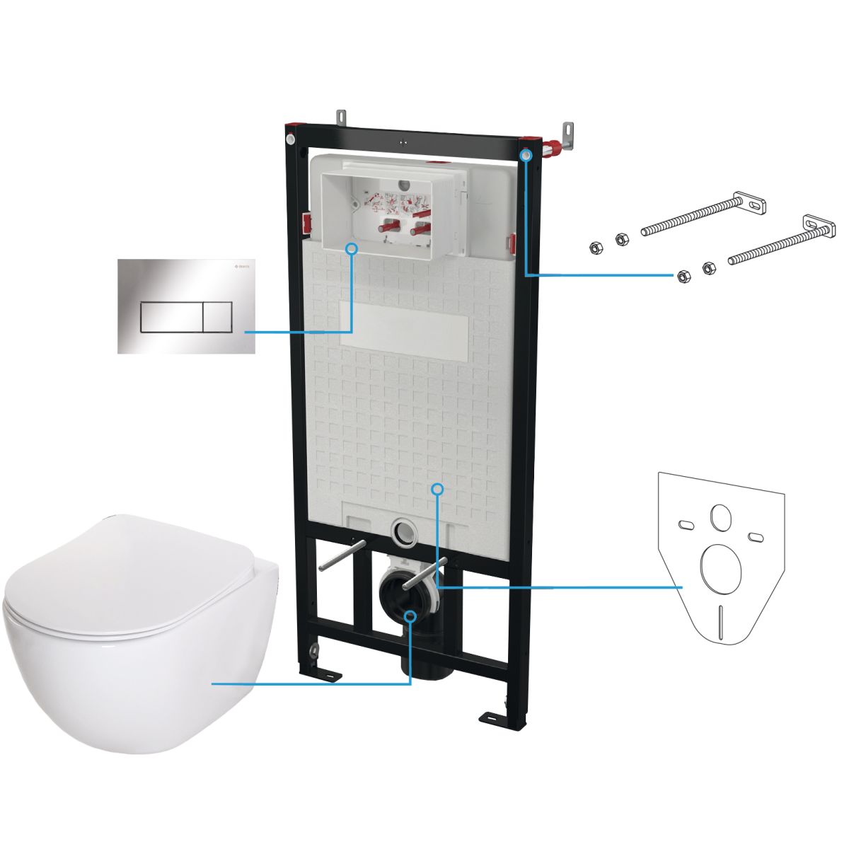 Deante Peonia kit châssis avec cuvette, abattant et bouton CDES6ZPW