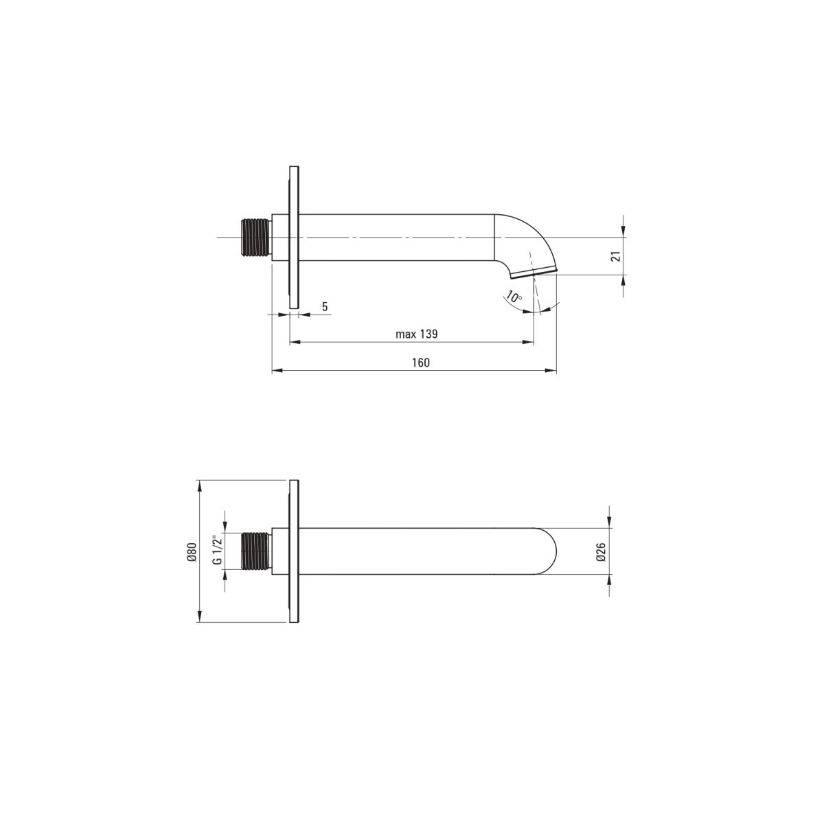 La finition or brossé est destinée à ceux qui souhaitent allier le design de luxe à la praticité. Le bec encastré de 16 cm de long est équipé d'un aérateur qui produit un jet régulier et laminaire, idéal pour les baignoires. Il est également équipé d'un second aérateur qui génère un jet aéré, ce qui permet d'installer le bec sur de petits lavabos. Il s'agit d'une solution élégante et polyvalente, également parfaite pour les salles de bains et les toilettes compactes.