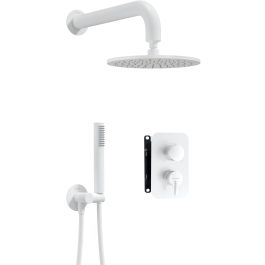 Le kit de douche Silia est le choix idĂ©al pour ceux qui apprĂ©cient l'Ă©lĂ©gance et la fonctionnalitĂ© dans leur salle de bains. Son design moderne en finition blanc mat Bianco ajoute un charme intemporel Ă l'intĂ©rieur. La forme simple et minimaliste de l'ensemble et l'installation encastrĂ©e facilitent l'entretien de la salle de bains. Le mitigeur encastrĂ© avec interrupteur de fonction en cĂ©ramique permet de passer en douceur du jet de tĂªte au jet de la douchette pour un contrĂ´le intuitif du dĂ©bit d'eau. La douchette avec fonction Cool-out protège contre la surchauffe et le flexible de douche Ă©quipĂ© d'un système anti-torsion Ă©vite de se tordre, augmentant ainsi le confort d'utilisation. En choisissant l'ensemble de douche Silia, vous obtenez un produit de haute qualitĂ© de fabrication, de sĂ©curitĂ©, de confort d'utilisation et de design attrayant.